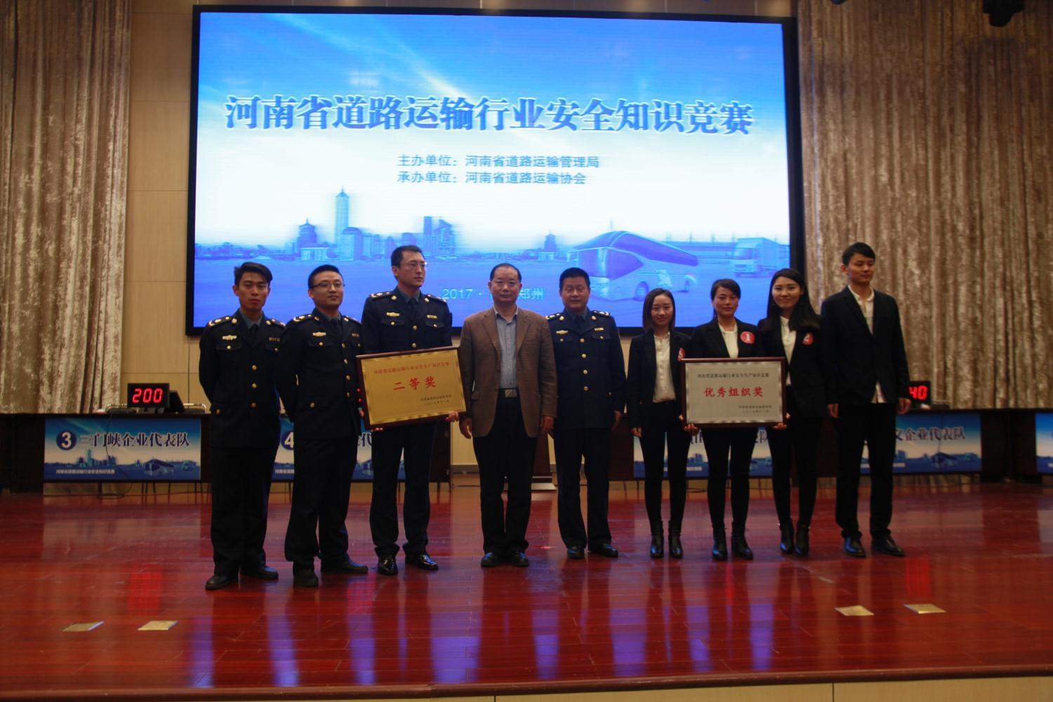 根据河南省交通运输厅《关于开展交通运输安全知识学习与竞赛工作的通知》(豫交文[2017]122号)文件要求与安排,全省道路运输行业安全生产知识竞赛于2017年11月13日-14日,在河南省交通运输厅成功举办。各省辖市、省直管县(市),通过层层选拔,组织选派了最优秀的选手,参加了本次竞赛活动。参加这次竞赛的有全省56支参赛队伍的168名优秀选手。经过两天紧张的理论知识竞赛和现场知识竞赛的激烈角逐,14日上午圆满落下帷幕,各参赛队的选手精诚努力,取得了优异成绩。新乡运管代表队、新乡企业代表队荣获一等奖;濮阳运管代表队、洛阳企业代表队获得二等奖;商丘运管代表队、济源运管代表队、三门峡企业代表队、许昌企业代表队获得三等奖;平顶山运管代表队、郑州运管代表队、永城运管代表队、巩义运管代表队、南阳企业代表队、平顶山企业代表队、巩义企业代表队、濮阳企业代表队获得优秀组织奖。各获奖代表队的参赛选手,分别由河南省道路运输管理局授予相应的优秀选手荣誉称号。